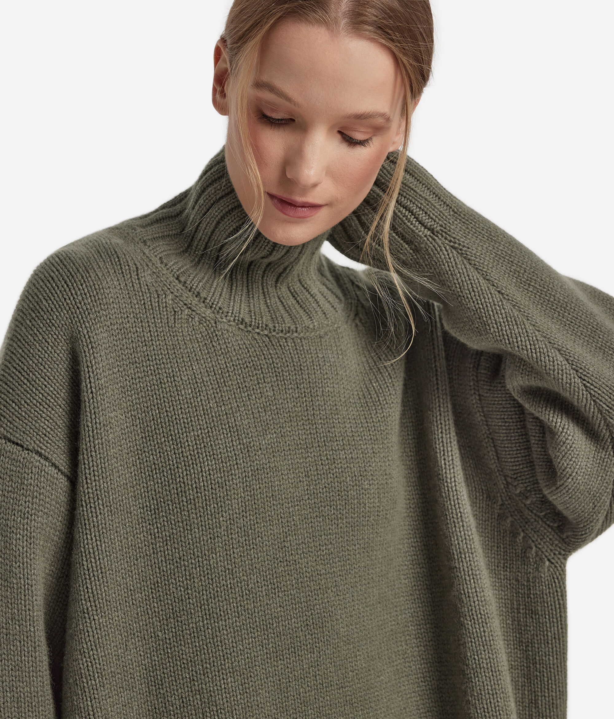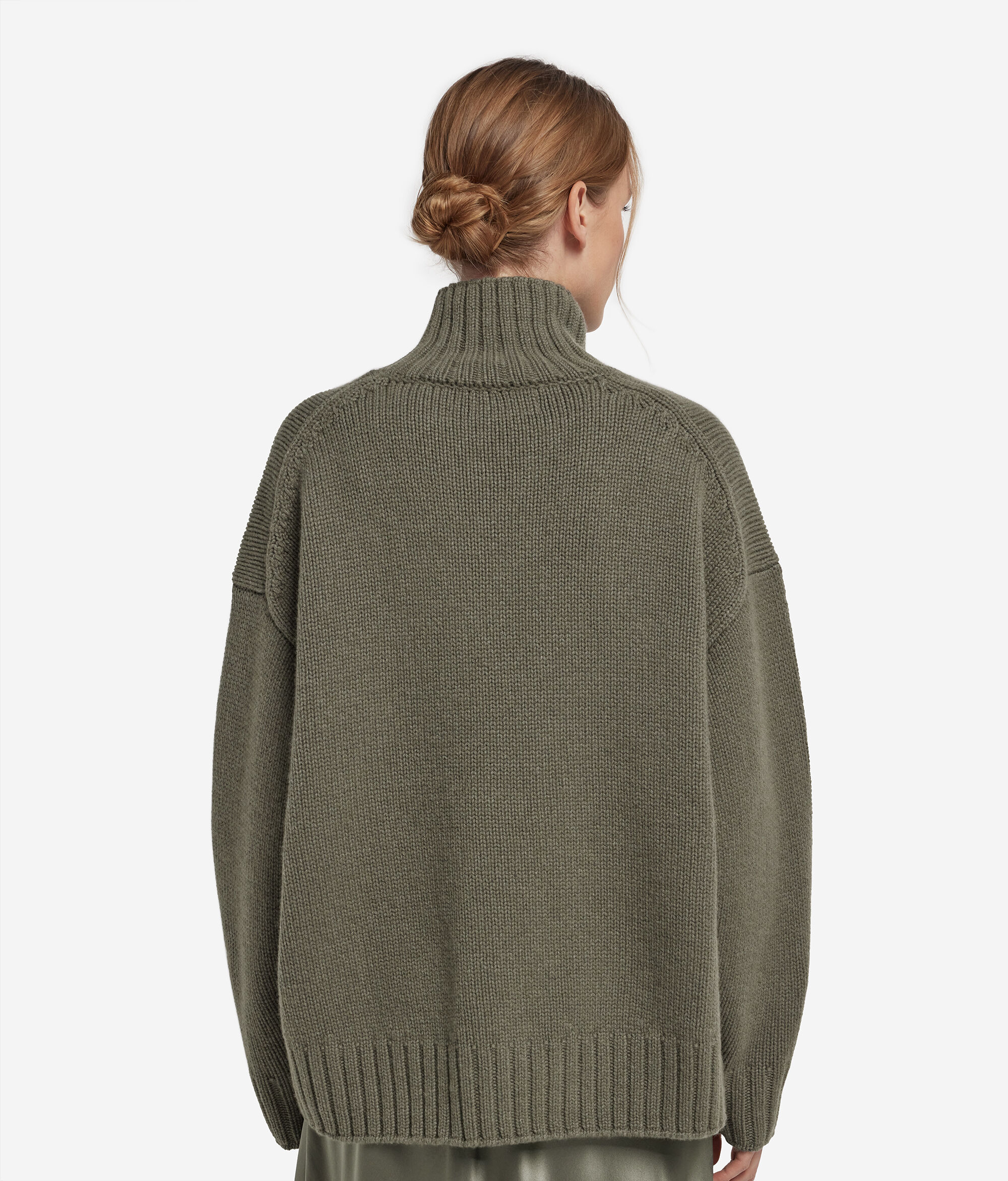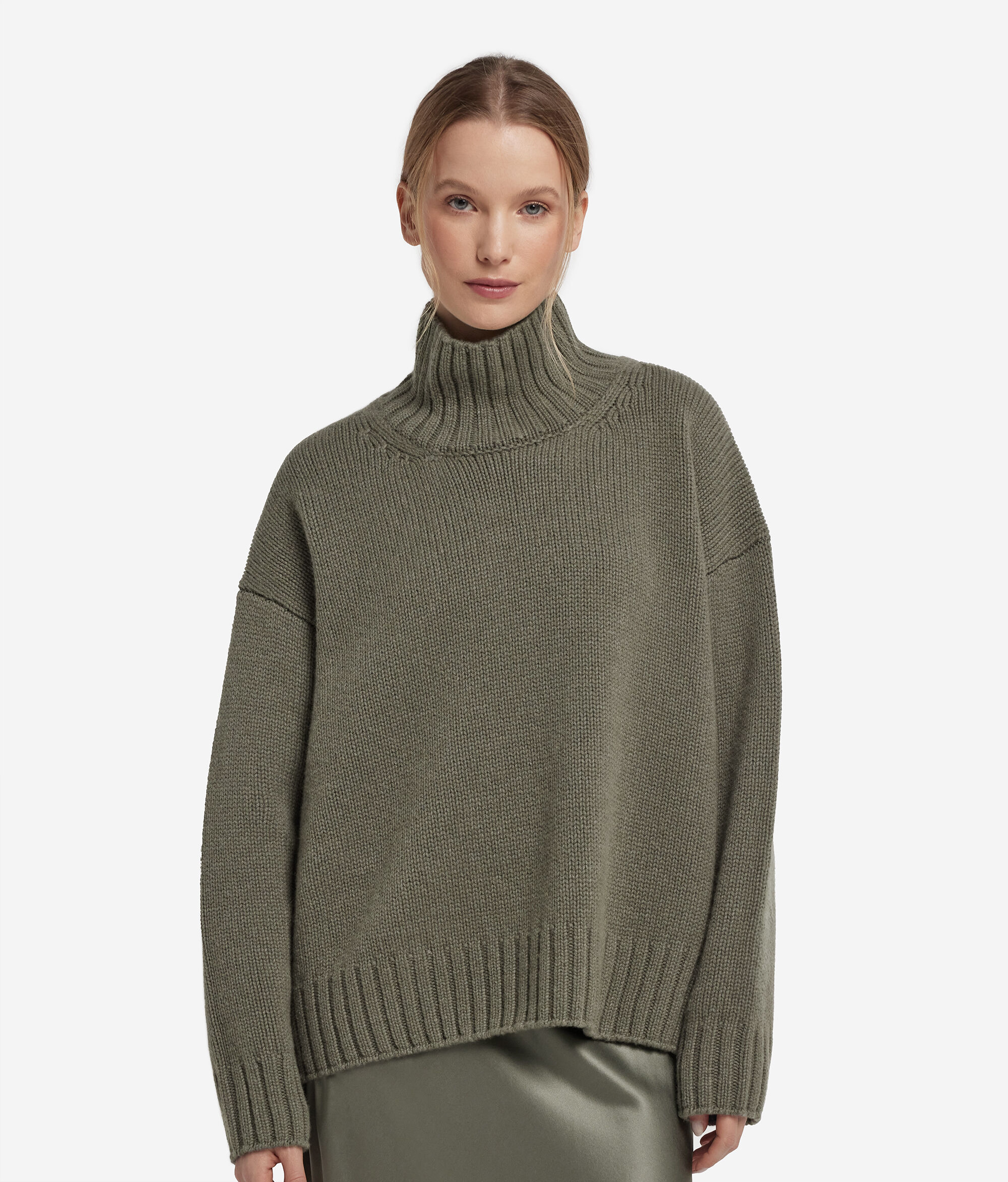 The quality of Ultrasoft Cashmere Tricot meets the contemporary lines of this boat-neck style sweater. The classic look is combined with the natural softness of the yarn and the relaxed-fit silhouette with dropped shoulders, which helps in rendering the piece comfortable for everyday wear.