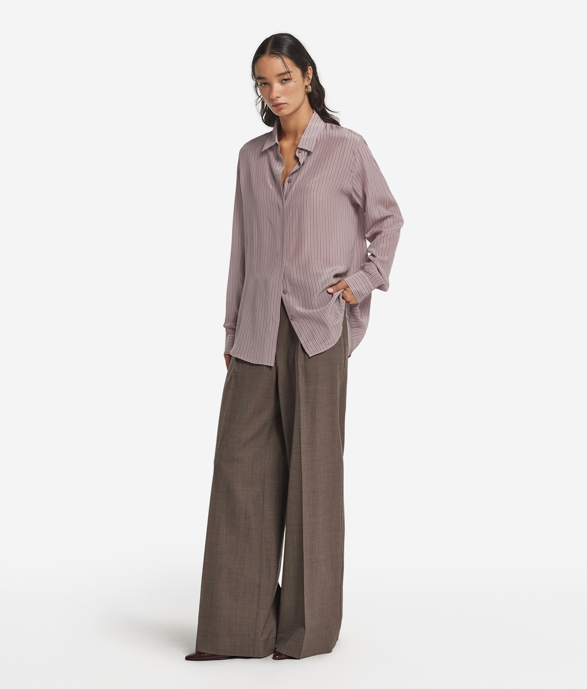 Made of printed silk, this shirt offers a distinct and refined look, perfect for occasions when you want to stand out in style. The fabric offers a natural elegance, enriched by patterns that add personality to the piece. The classic collar completes the traditional design while the concealed button closure contributes to a minimalistic and orderly line. An ideal choice for those who love the elegance of silk combined with carefully thought-out tailored details.