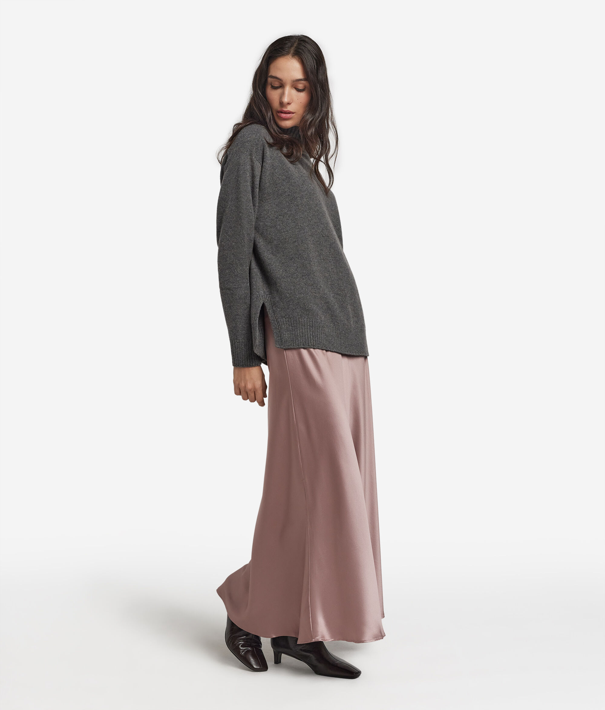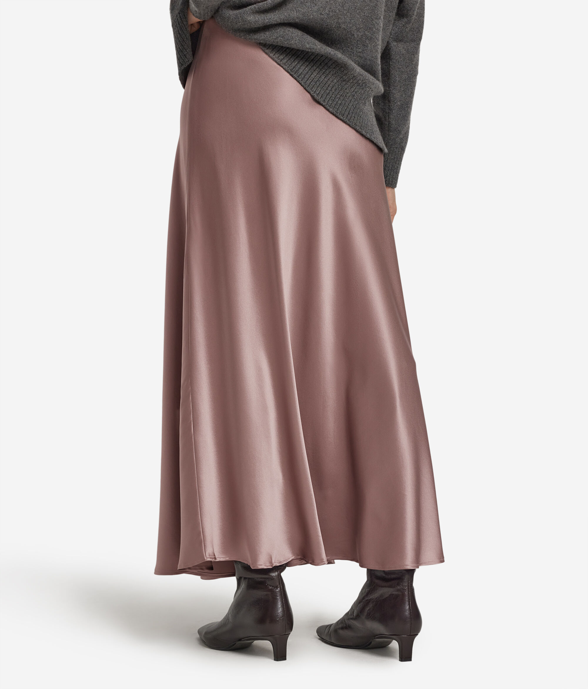 Discover the elegance and sophistication of this skirt made entirely of silk satin. The design is characterized by an elastic waistband, which offers comfort and adaptability. The calf length adds a touch of class, making it ideal for both day and evening wear. The satin fabric adds a luxurious and lightweight finish, guaranteeing a sophisticated and timeless look.