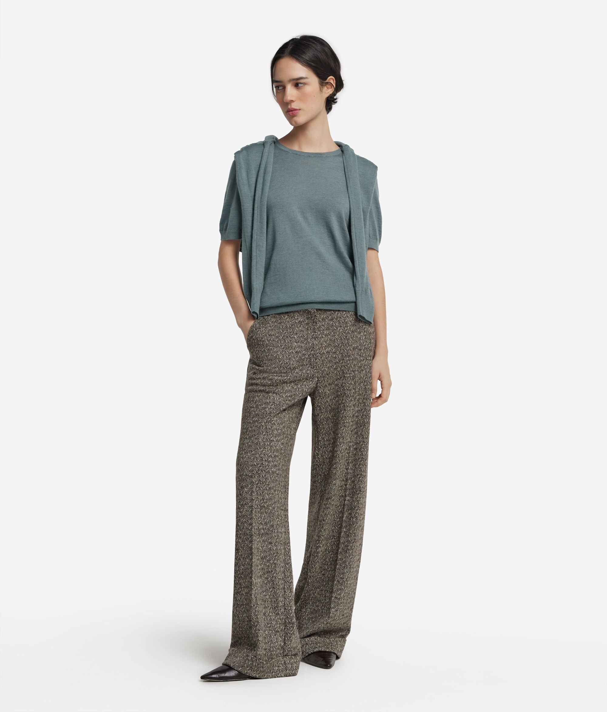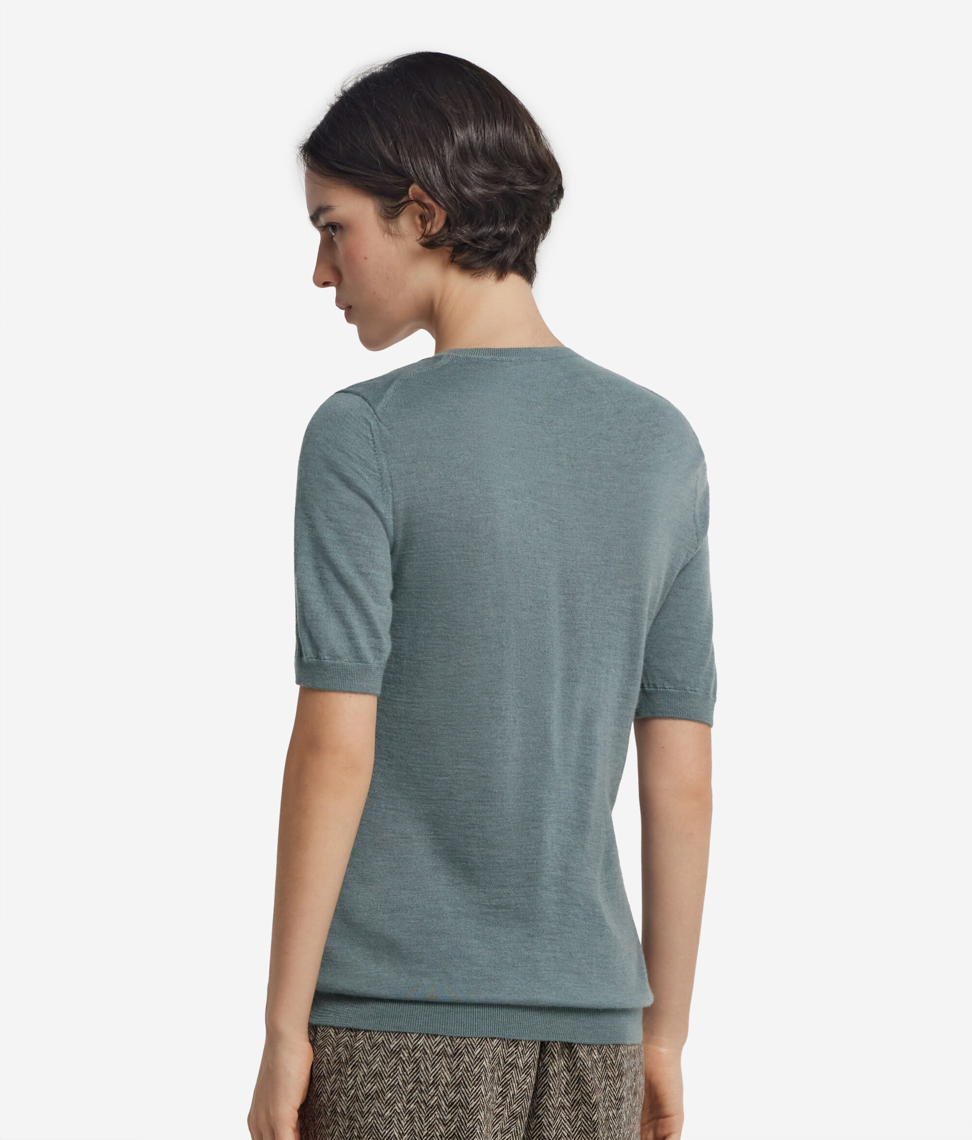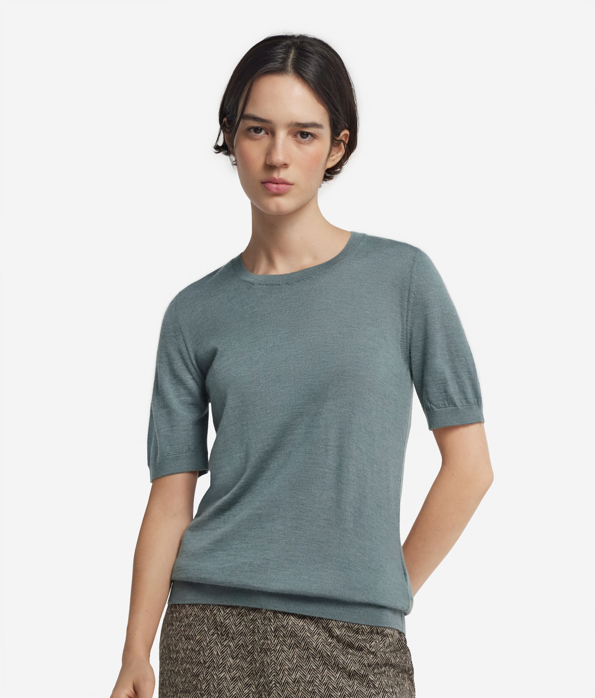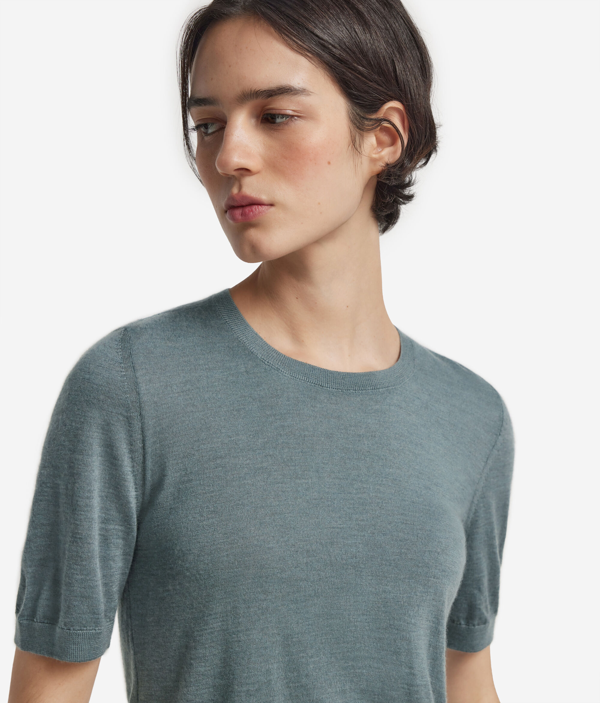 Crafted from ultrafine cashmere, this crew neck short sleeve sweater offers a lightweight yet incredibly soft feel, perfect for year-round wear. The crewneck adds a classic, flattering shape, while the short sleeves lend a modern touch, making this piece ideal for layering in cooler months or wearing on its own as the weather warms. Designed with a slim fit and regular shoulders, this short sleeve cashmere sweater offers a sleek, tailored silhouette that contours the body while maintaining comfort and ease of movement. The regular length hits just at the hips, making it versatile enough to tuck into high-waisted trousers or skirts, or leave untucked for a more relaxed look. Whether paired with tailored jeans for a polished, daytime outfit or layered under a blazer for an elevated office look, this women’s short sleeve cashmere sweater is the perfect addition to any wardrobe, offering endless styling potential and unmatched softness.