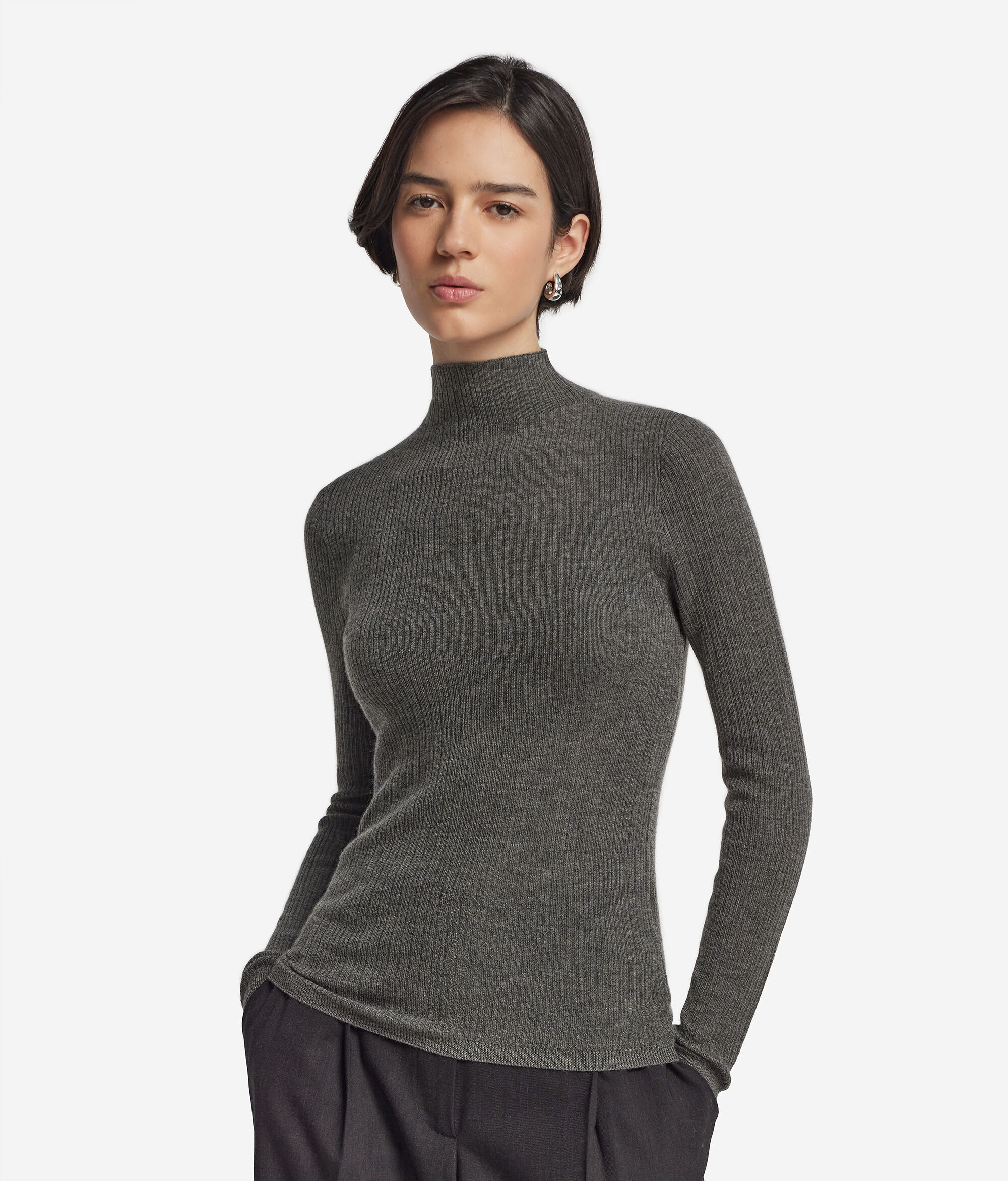 Timeless ribbed knit workmanship embellishes the essential design of this Ultrafine Cashmere turtleneck, an expression of extreme softness and enveloping warmth. Regular shoulders and fine trim on the hem and cuffs lend structure and tailored care, while the hip length and slim fit enhance the silhouette with elegance.