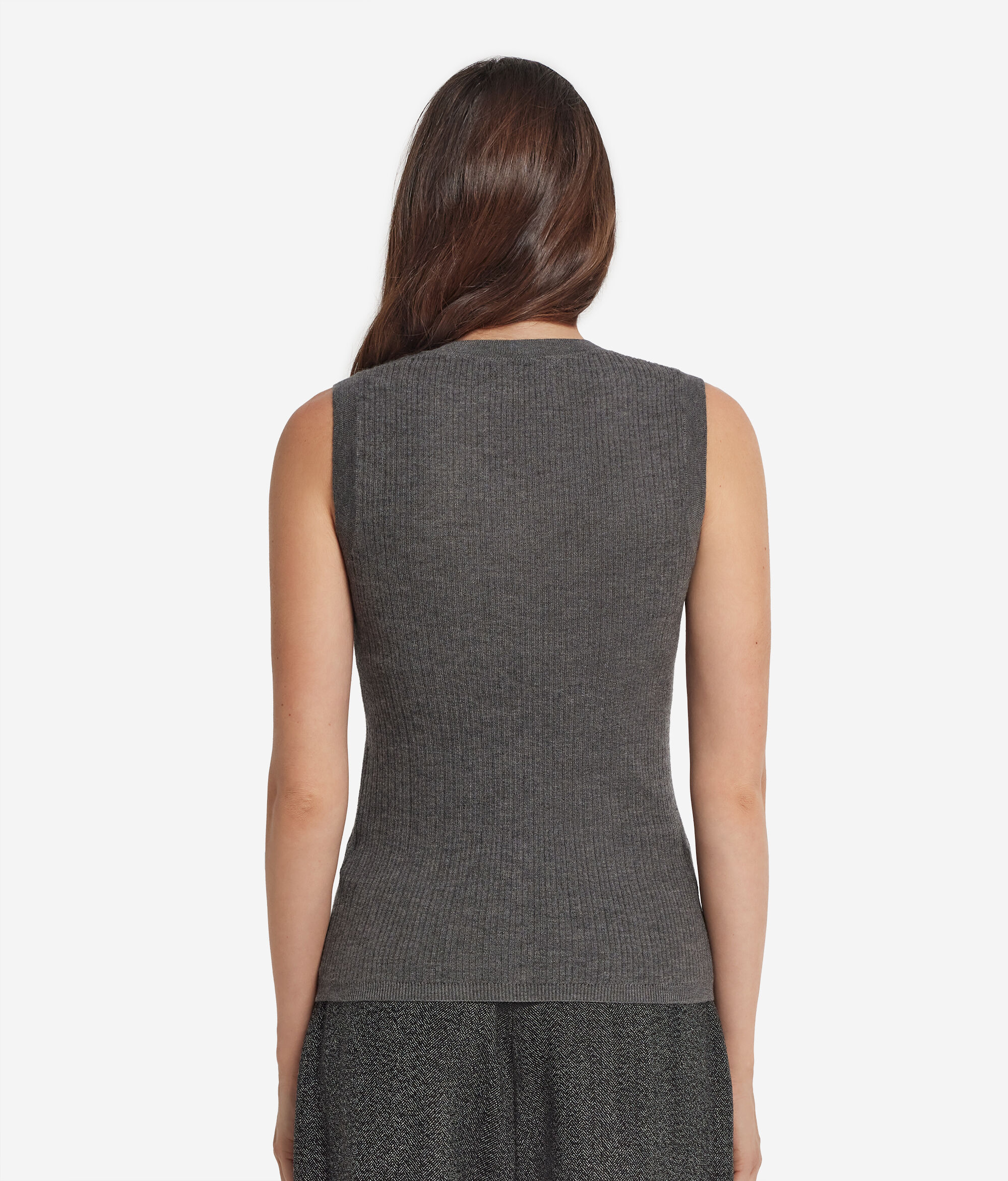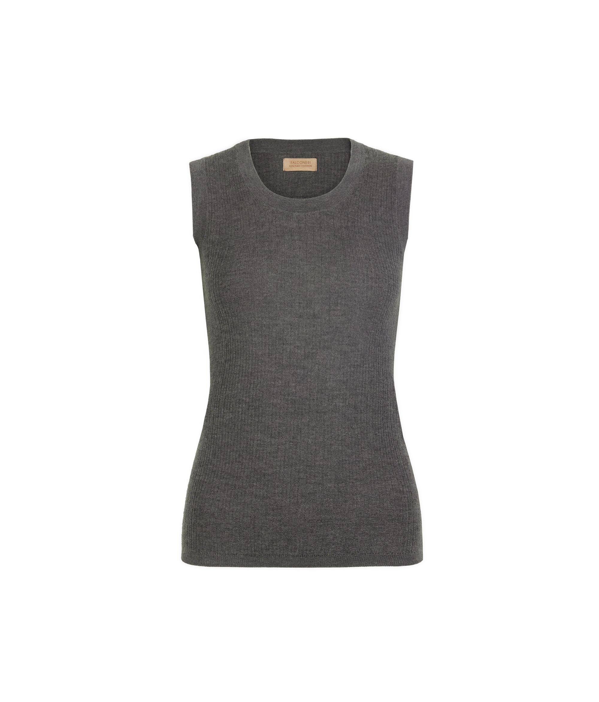 The noble fiber of Ultrafine Cashmere elevates the essential taste of this timelessly refined vest. The essential crewneck design is enhanced by the vertical ribbed knitting, which lends momentum to the figure while the trim on the hem, neckline and shoulders express craftsmanship and attention to detail.