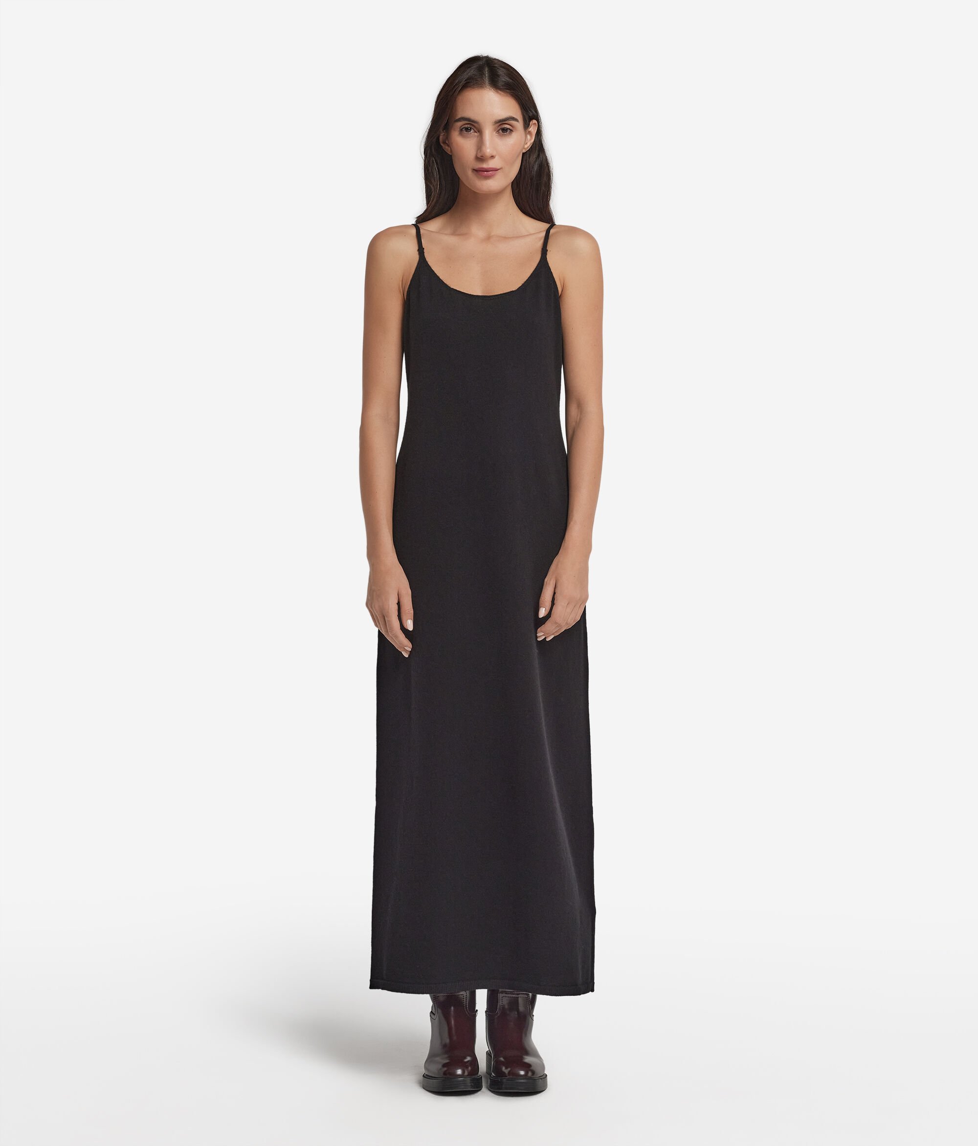 Essential and sophisticated, this Ultrasoft Cashmere slip dress combines softness and lightness in a minimal silhouette. The rounded neckline at the front meets a deep plunge at the back, while the thin adjustable shoulder straps allow you to delicately adapt the fit. The ribbed hem adds a refined touch while the calf length completes a design created to elegantly accompany both everyday moments and special occasions.