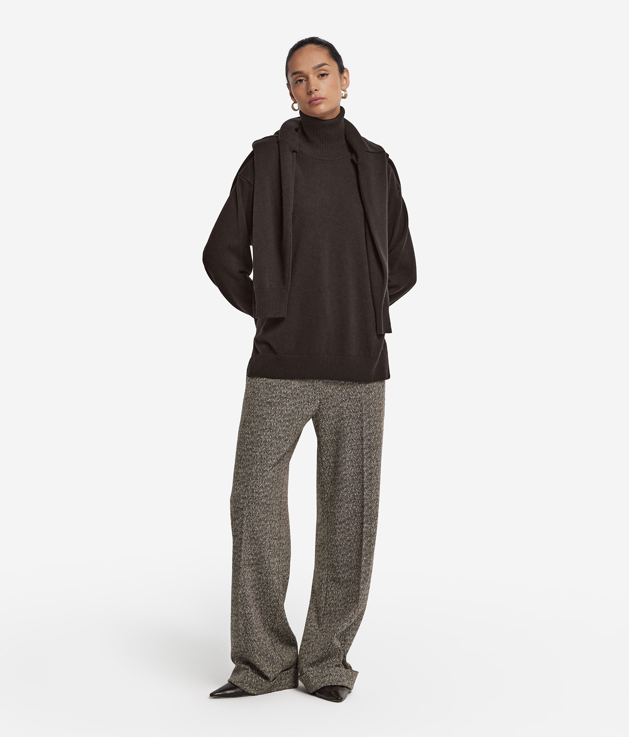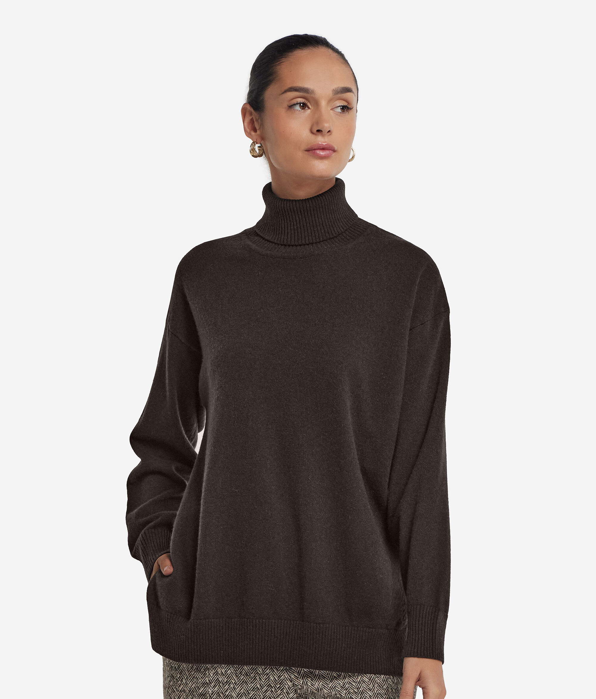 The Falconeri turtleneck sweater with side slits combines luxurious comfort with modern design. Crafted from pure cashmere, it delivers an exceptionally soft and cozy texture that feels indulgent against the skin, making it ideal for colder months. The high turtleneck provides added warmth and frames the neckline with a sophisticated touch. The standout feature of this side slit turtleneck sweater is its thoughtfully designed split hem. The slits at the sides enhance ease of movement and create a flattering, flowy silhouette that adds an element of elegance to the sweater’s relaxed fit. Ribbed detailing at the cuffs, hem, and neckline ensures durability and a polished finish. Perfect for layering, this split hem turtleneck pairs effortlessly with slim trousers or leggings for a streamlined look, or over a maxi skirt for a chic, contemporary ensemble.